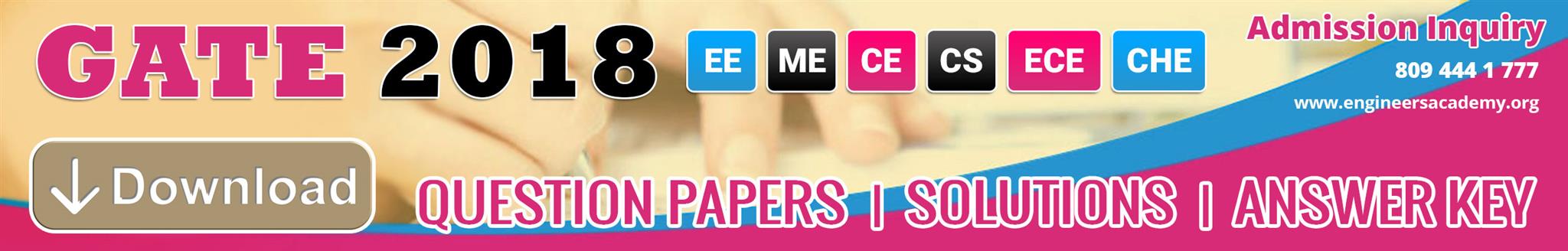 GATE-2018 (EE,ME,CE,ECE,CH,IN & CS) Question papers / Answer-Key / Solutions